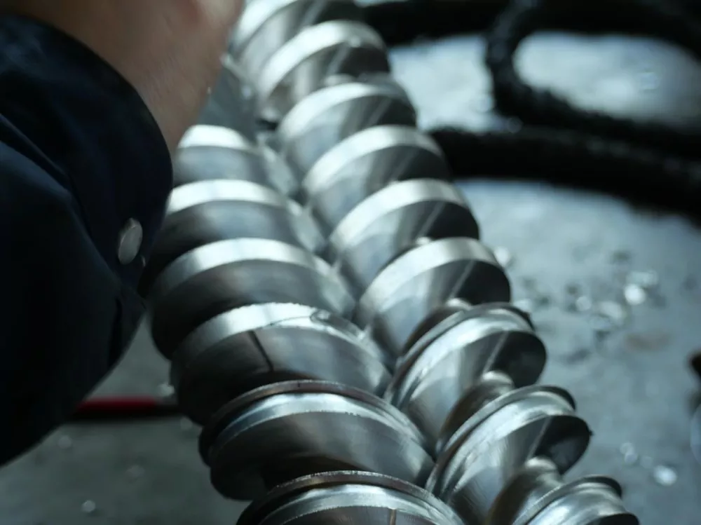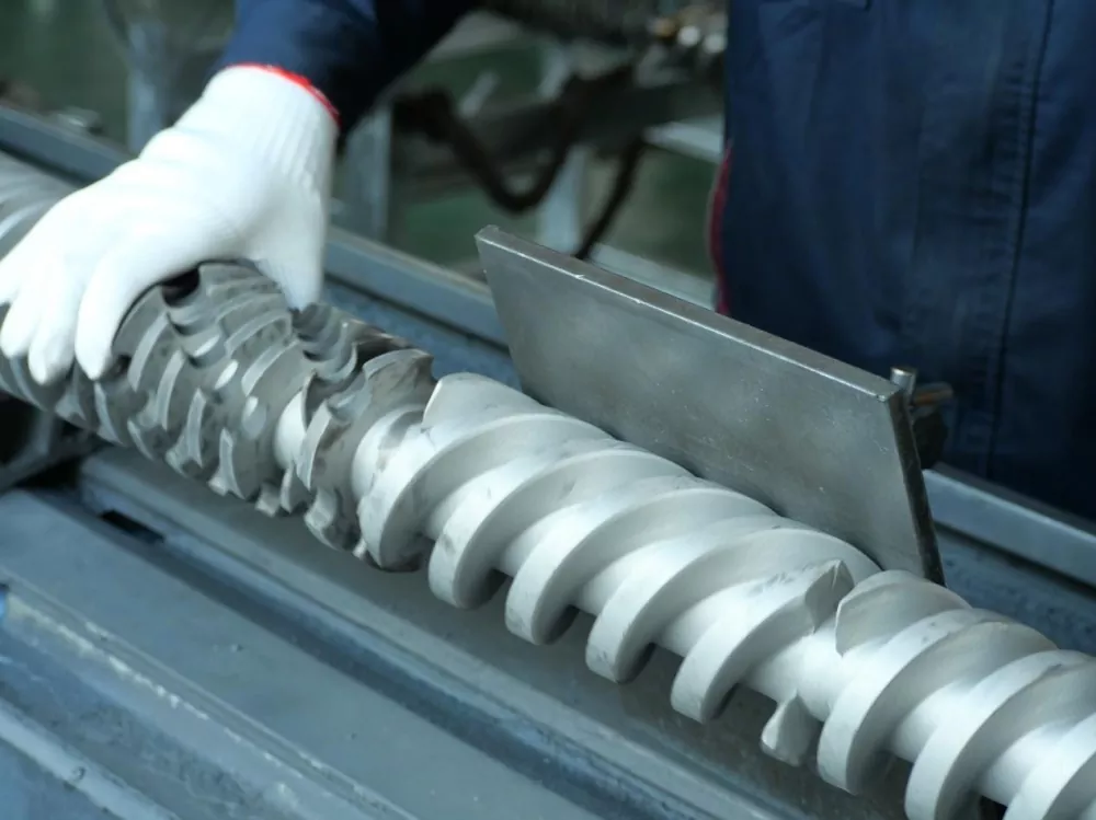 Выбар матэрыялу таксама важны. Нашы шрубы выраблены з высакаякаснай азотаванай легаванай сталі 38CrMoALA. Ён праходзіць сямідзённую загартоўку і апрацоўку азотаваннем, у выніку чаго атрымліваецца азотаваны пласт таўшчынёй 0,50-0,70 мм і цвёрдасць паверхні HV950-1050. Гэтыя ўласцівасці матэрыялу забяспечваюць выдатную зносаўстойлівасць нават пры тэмпературах каля 200°C, павялічваючы тэрмін службы шрубы як мінімум на адну пятую ў параўнанні са звычайнымі прадуктамі. Гэта прадухіляе назапашванне матэрыялу ў глухіх кутах з-за зносу паверхні пры працяглым выкарыстанні.